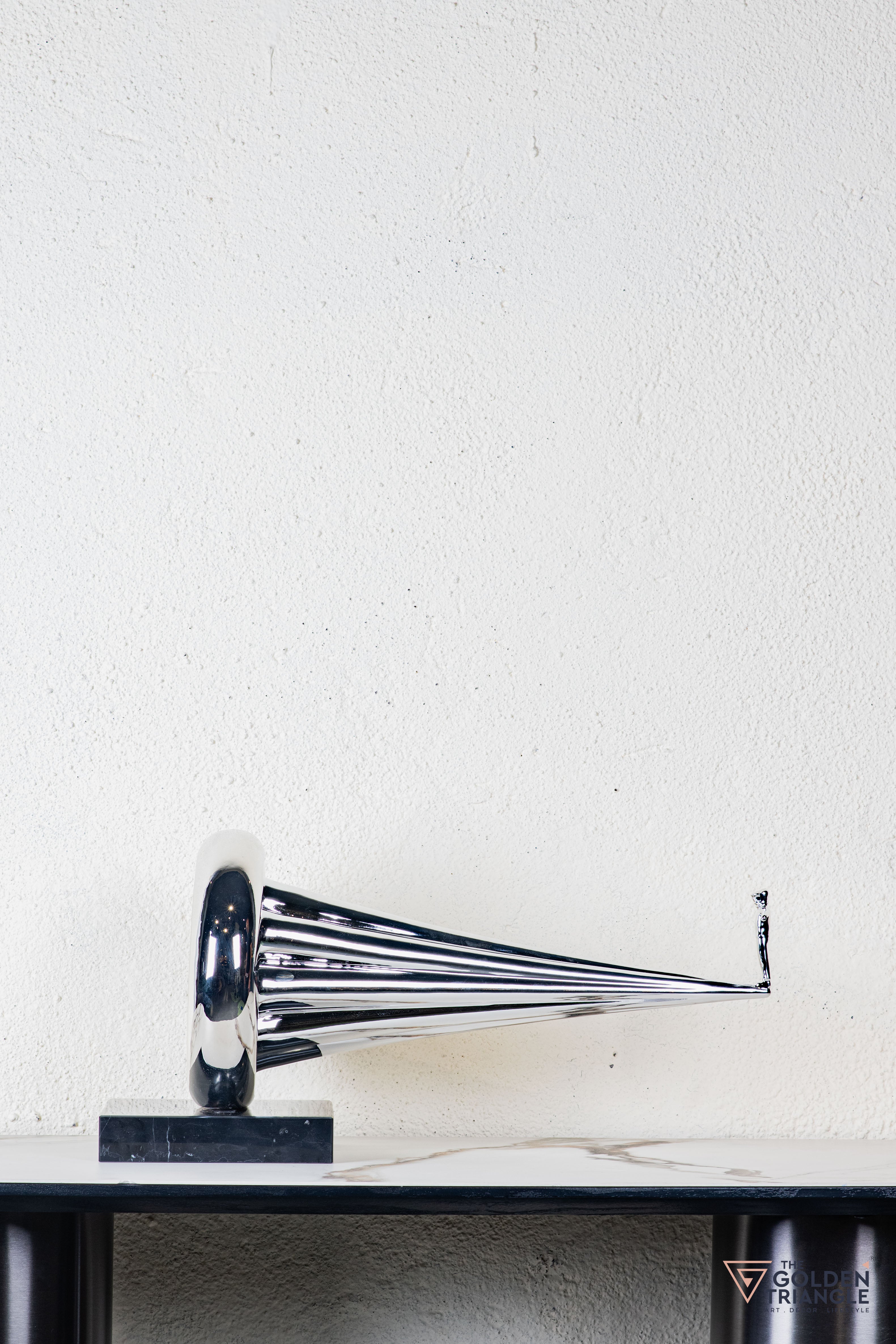 Discover unparalleled sophistication with our abstract sculpture, a masterpiece destined to elevate your home décor. This sculpture boasts an alluring electroplated finish. Its avant garde design adds a touch of modernity and elegance to any living space, captivating the eye. Crafted with precision and attention to detail, this sculpture is the epitome of luxury, seamlessly blending contemporary aesthetics with timeless charm.