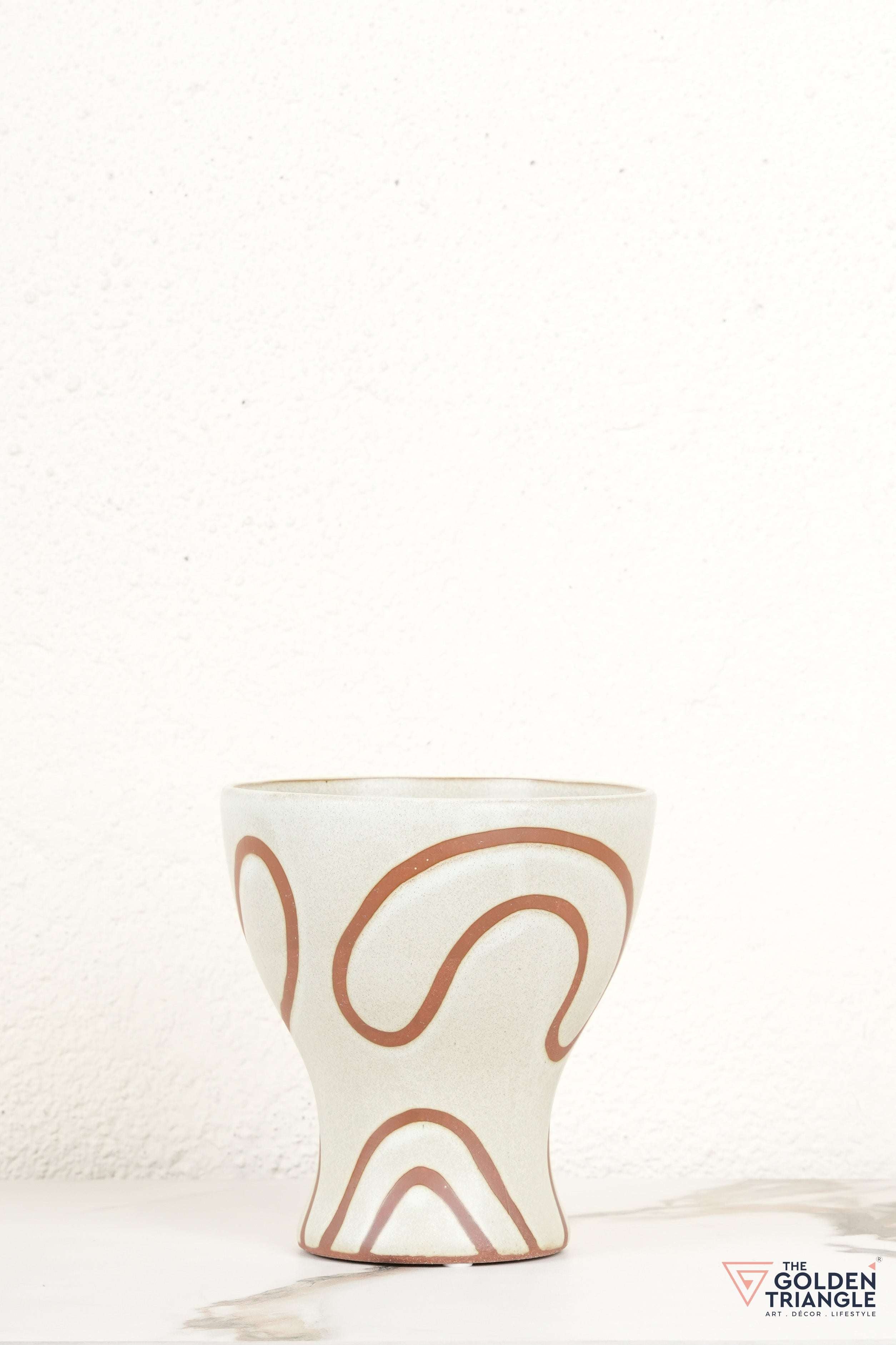 Bold and beautifully abstract, this ceramic tabletop vase is a sculptural statement piece that instantly draws the eye. Its fluid, hand-molded form and rich finish give it an edgy yet elegant appeal, perfect for contemporary interiors. Use it to display dry branches or keep it empty—it speaks volumes on its own. Whether styled on a console, sideboard, or work desk, it adds a dash of modern artistic flair to your space.