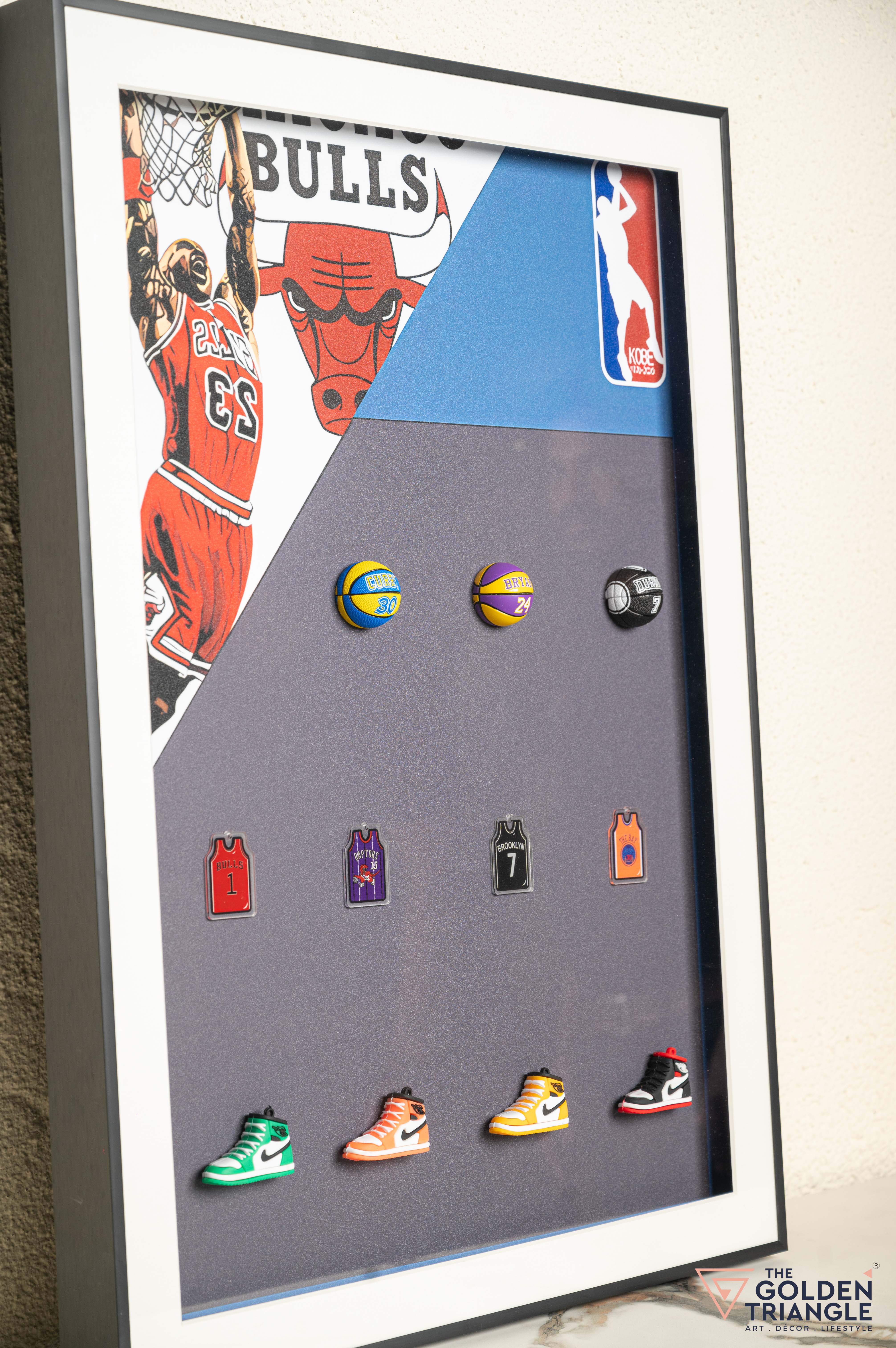 Celebrate the game of basketball with a unique art statement with this exclusive 3D shadow box wall art, blending iconic sneakers and legendary basketball players. Perfect for sports enthusiasts, this framed piece adds depth and dynamic energy to any decor. Ideal for modern decor lovers, place them in your home or office and impress your guests.