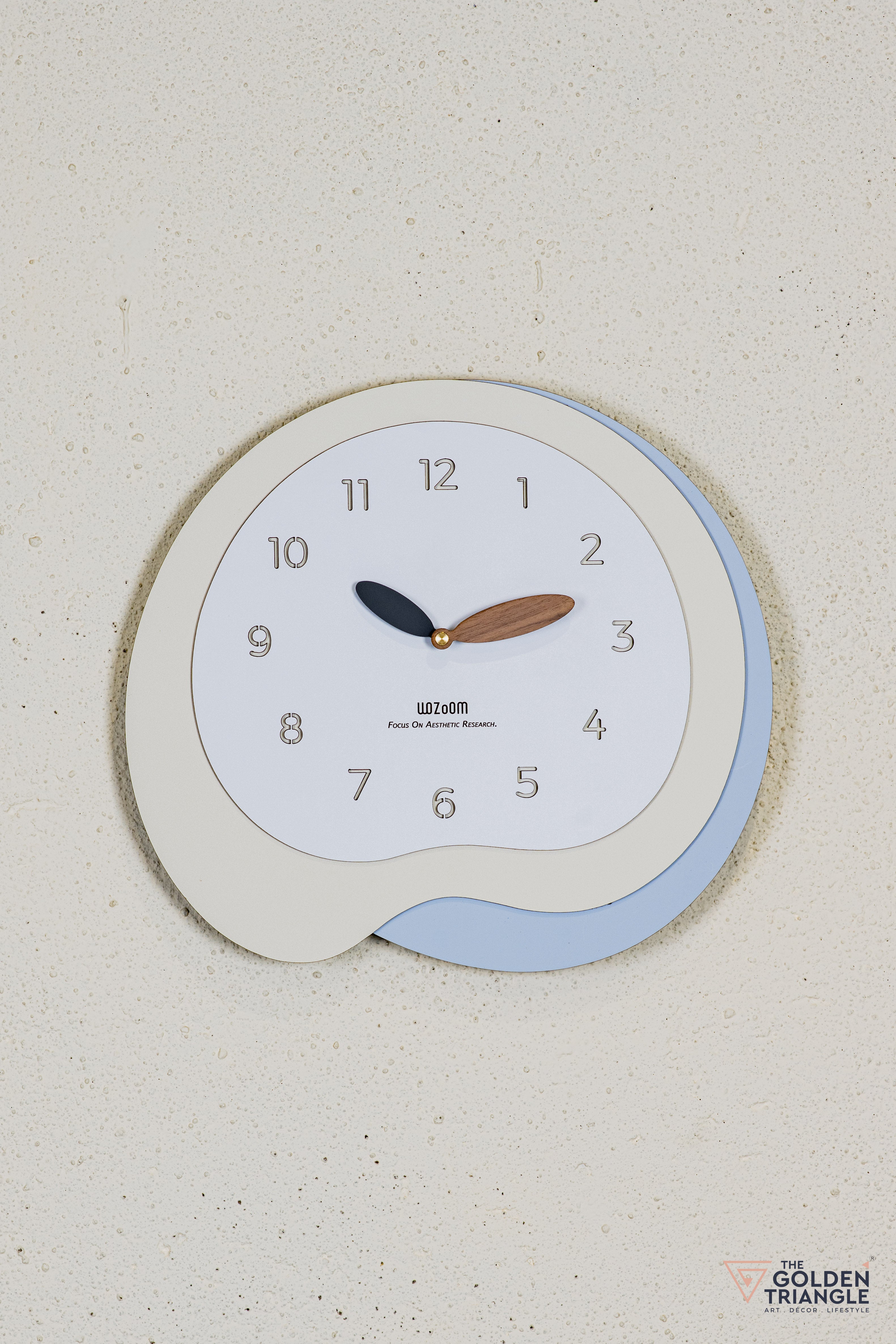 Contemporary & Artistic Design: A statement wall clock with a unique overlapping shape, blending modern aesthetics with functional décor.