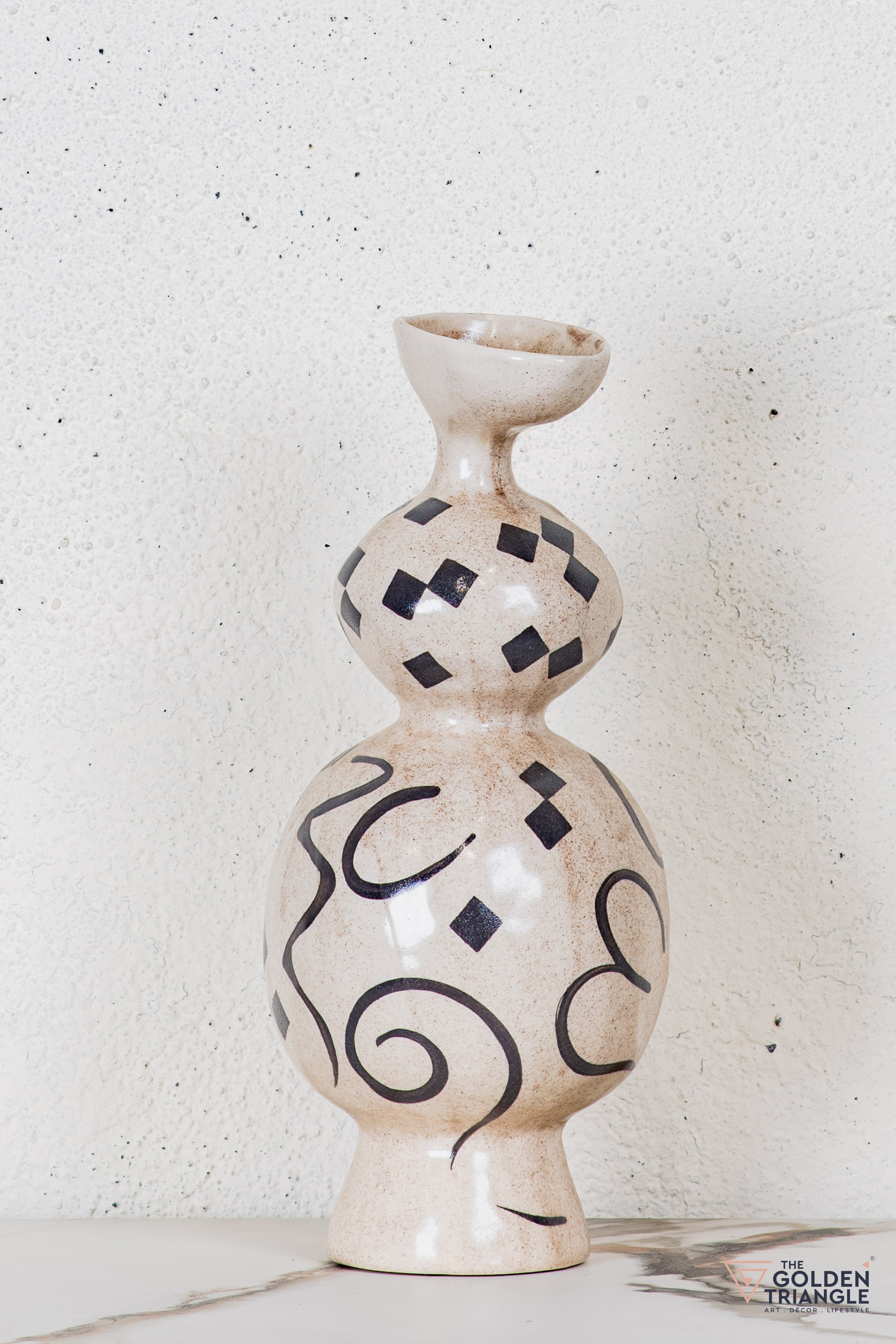 Bold and beautifully abstract, this ceramic tabletop vase from our Vogue collection is a sculptural statement piece that instantly draws the eye. Its fluid, hand-molded form and rich finish give it an edgy yet elegant appeal, perfect for contemporary interiors. Use it to display dry branches or keep it empty—it speaks volumes on its own. Whether styled on a console, sideboard, or work desk, it adds a dash of modern artistic flair to your space.