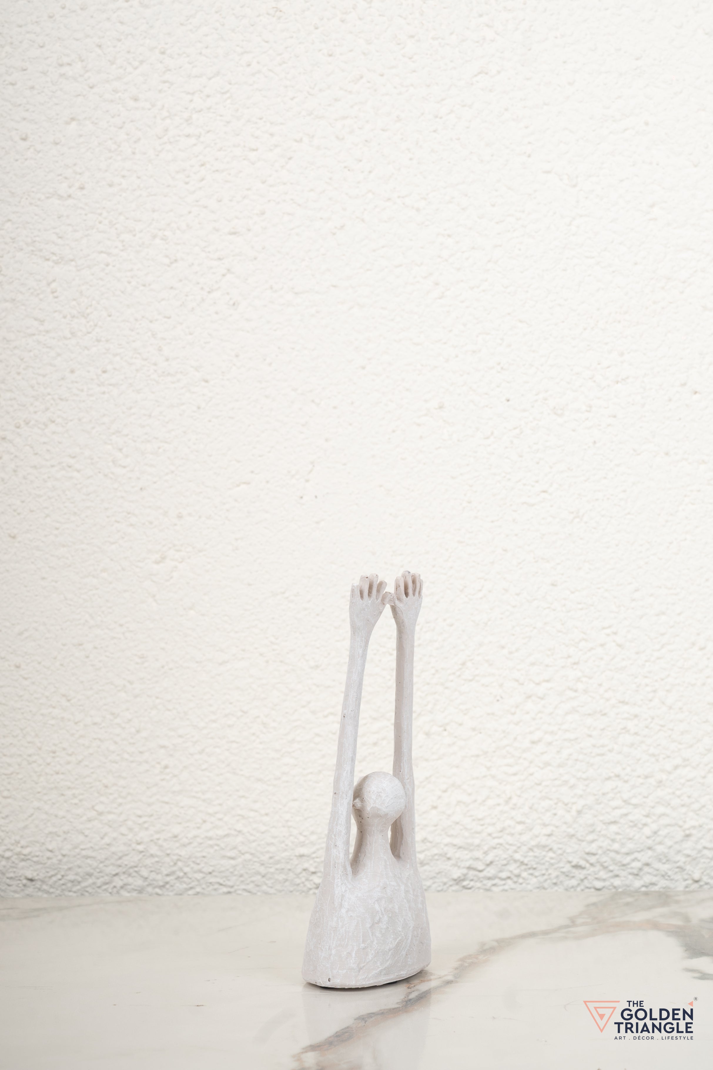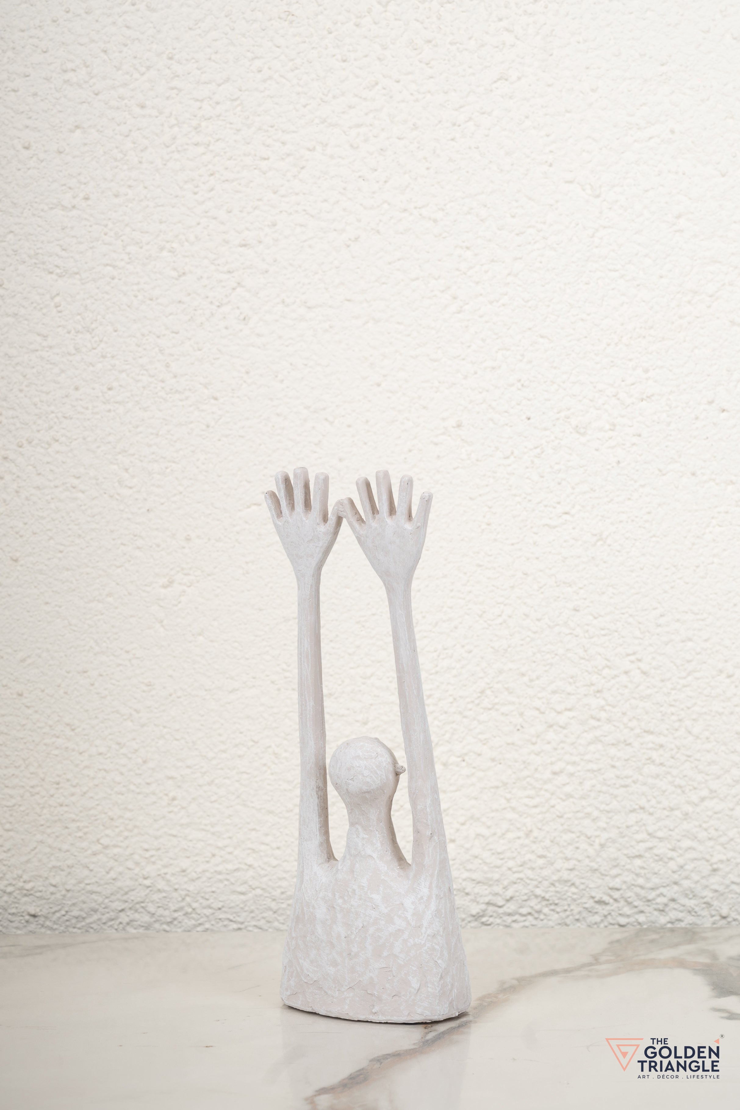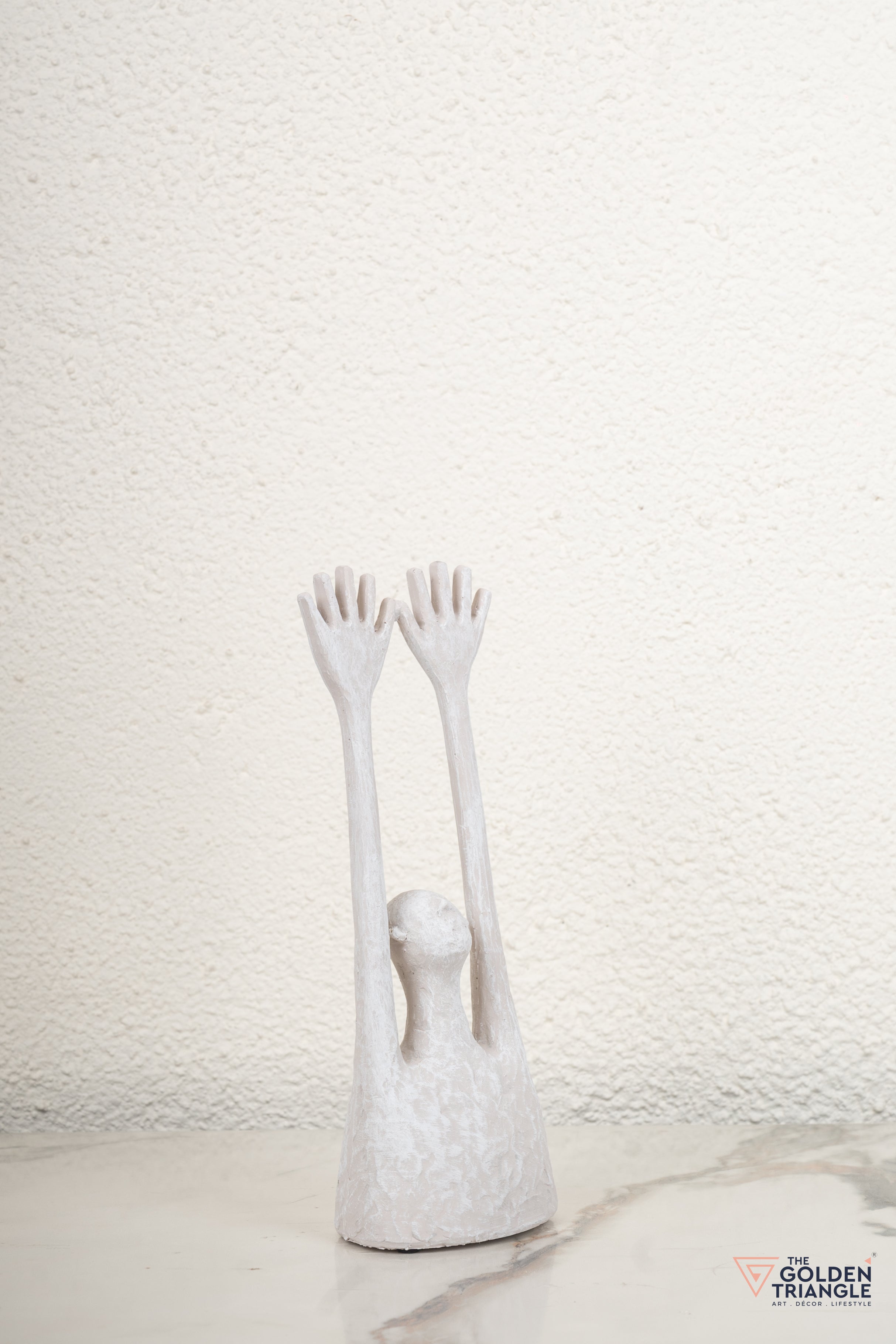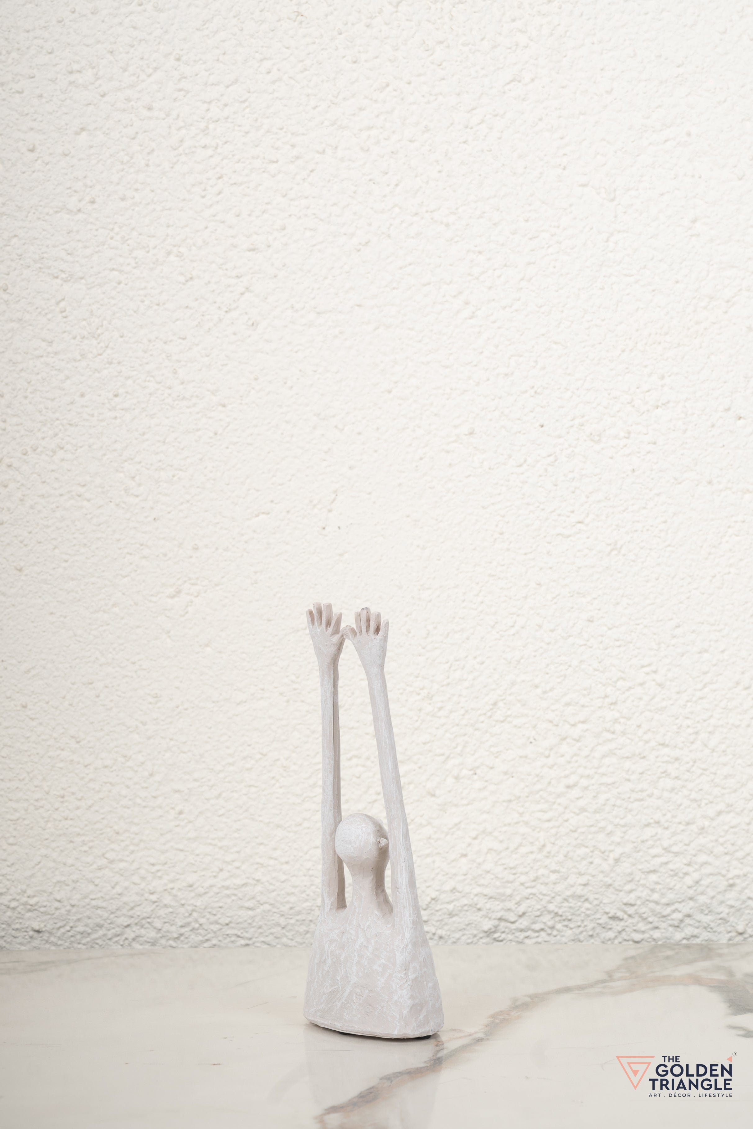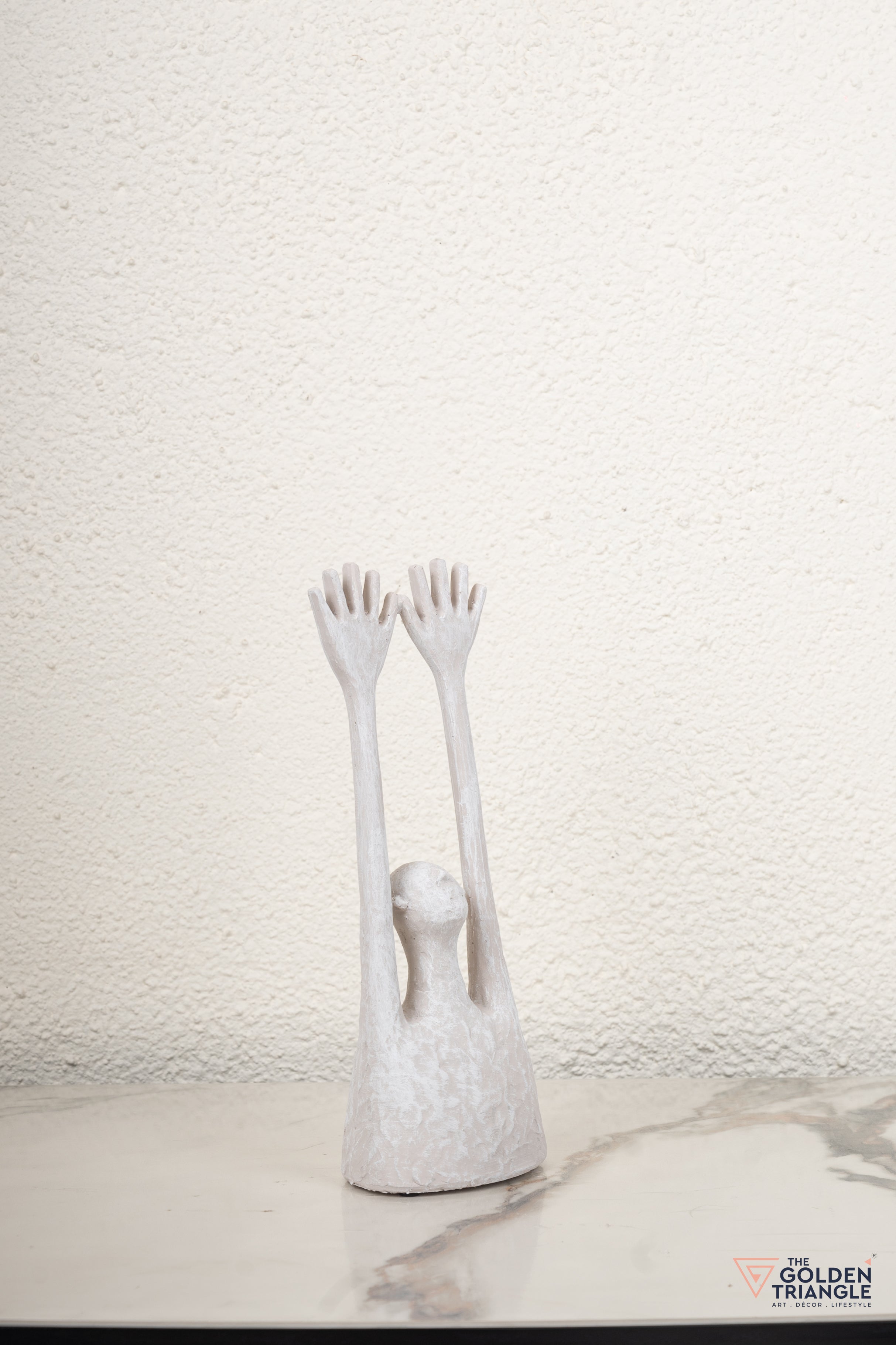 The resin sculptures are a playful and uplifting addition to any home decor collection. Their unique design features outstretched arms and hands, creating a sense of joy and exuberance. The sculptures' textured surface adds depth and visual interest, while the neutral tone complements a variety of interior styles. These sculptures are perfect for showcasing on a bookshelf, side table, or mantelpiece. They can be displayed individually or as a pair, creating a visually striking composition. The sculptures' compact size makes them suitable for both small and large spaces, adding a touch of personality and cheer to any room