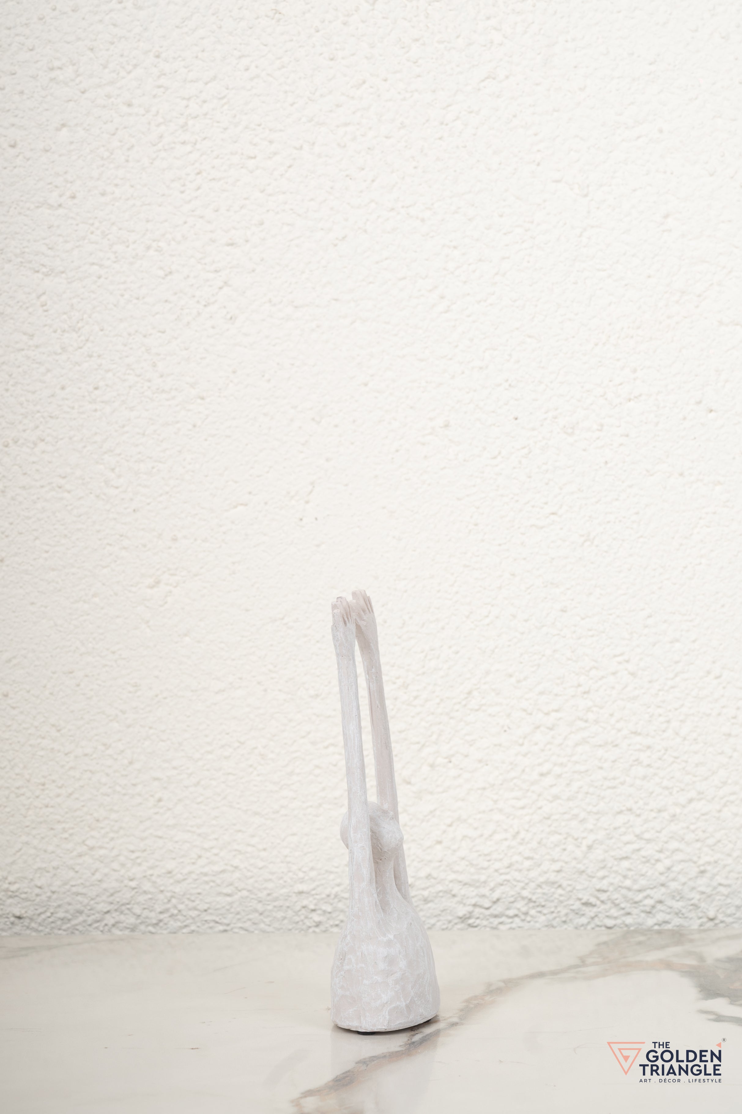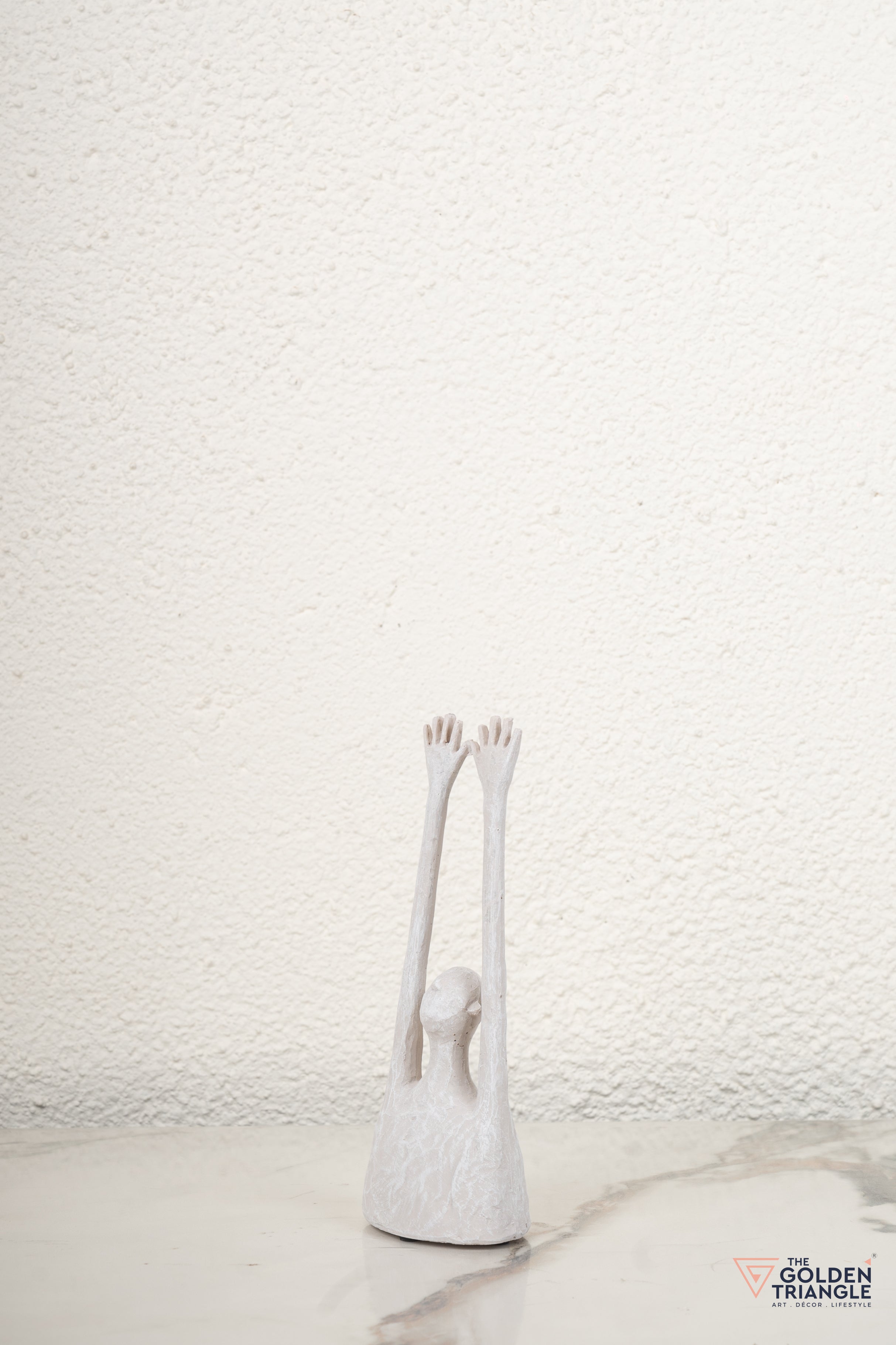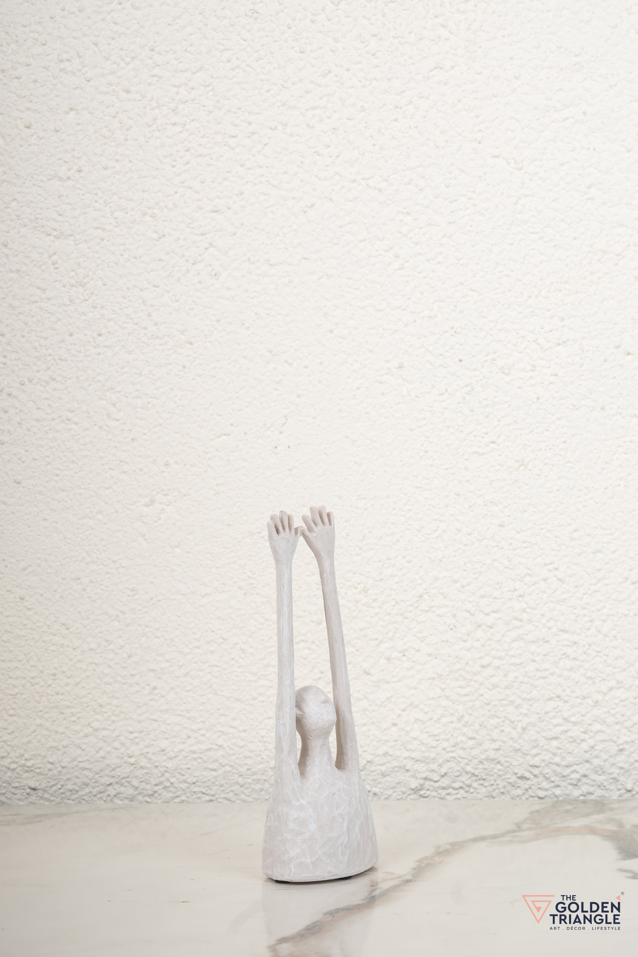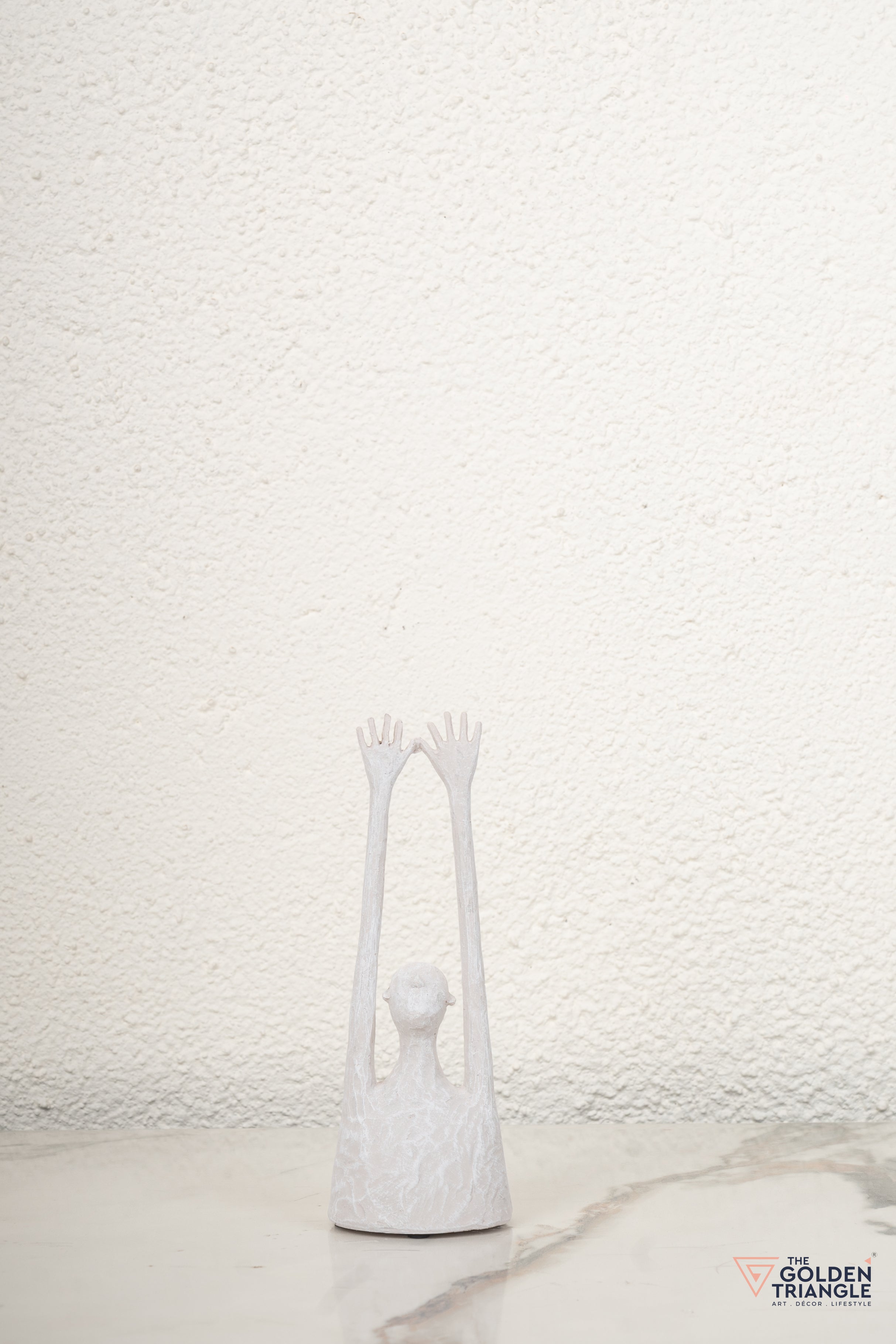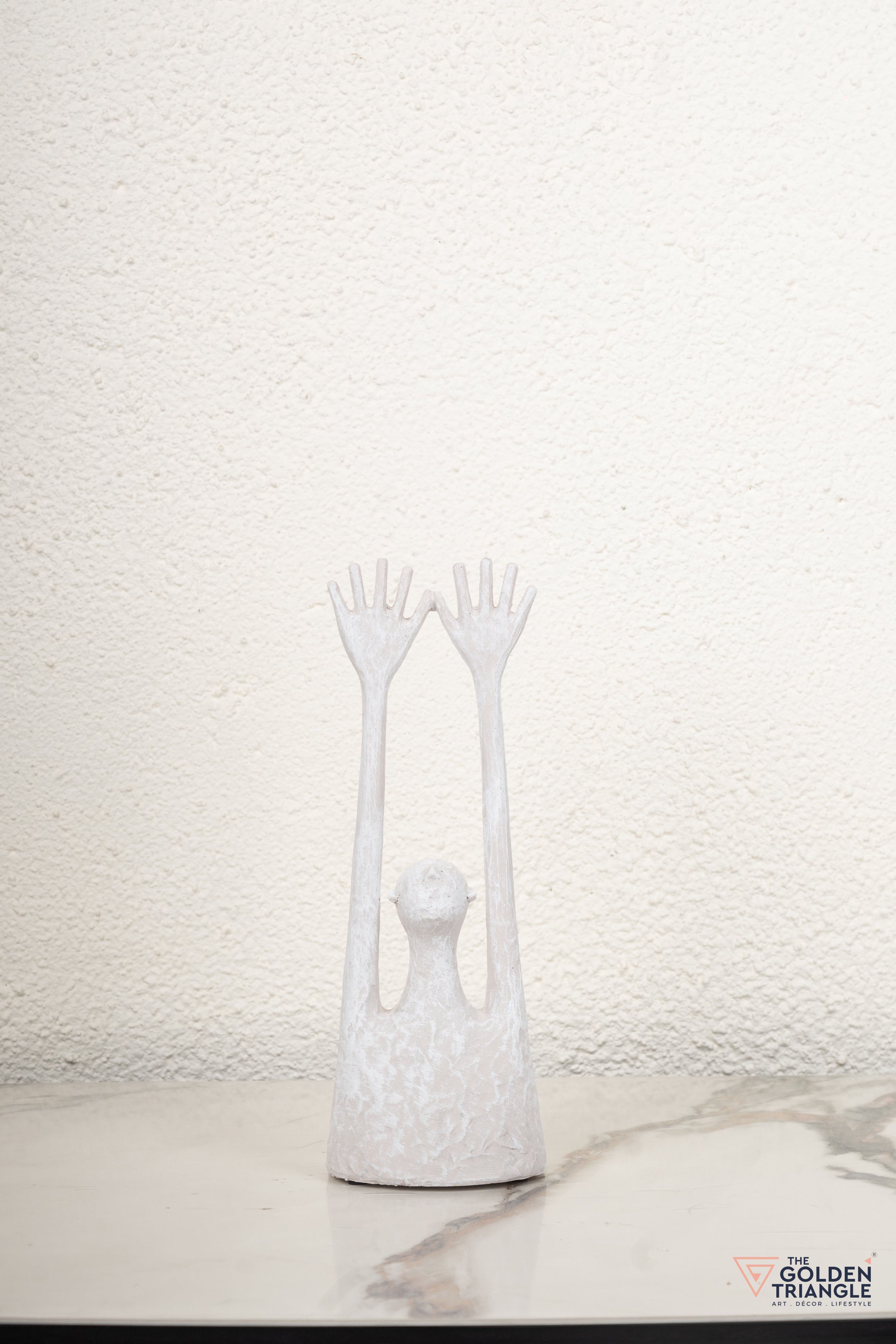 The resin sculptures are a playful and uplifting addition to any home decor collection. Their unique design features outstretched arms and hands, creating a sense of joy and exuberance. The sculptures' textured surface adds depth and visual interest, while the neutral tone complements a variety of interior styles. These sculptures are perfect for showcasing on a bookshelf, side table, or mantelpiece. They can be displayed individually or as a pair, creating a visually striking composition. The sculptures' compact size makes them suitable for both small and large spaces, adding a touch of personality and cheer to any room