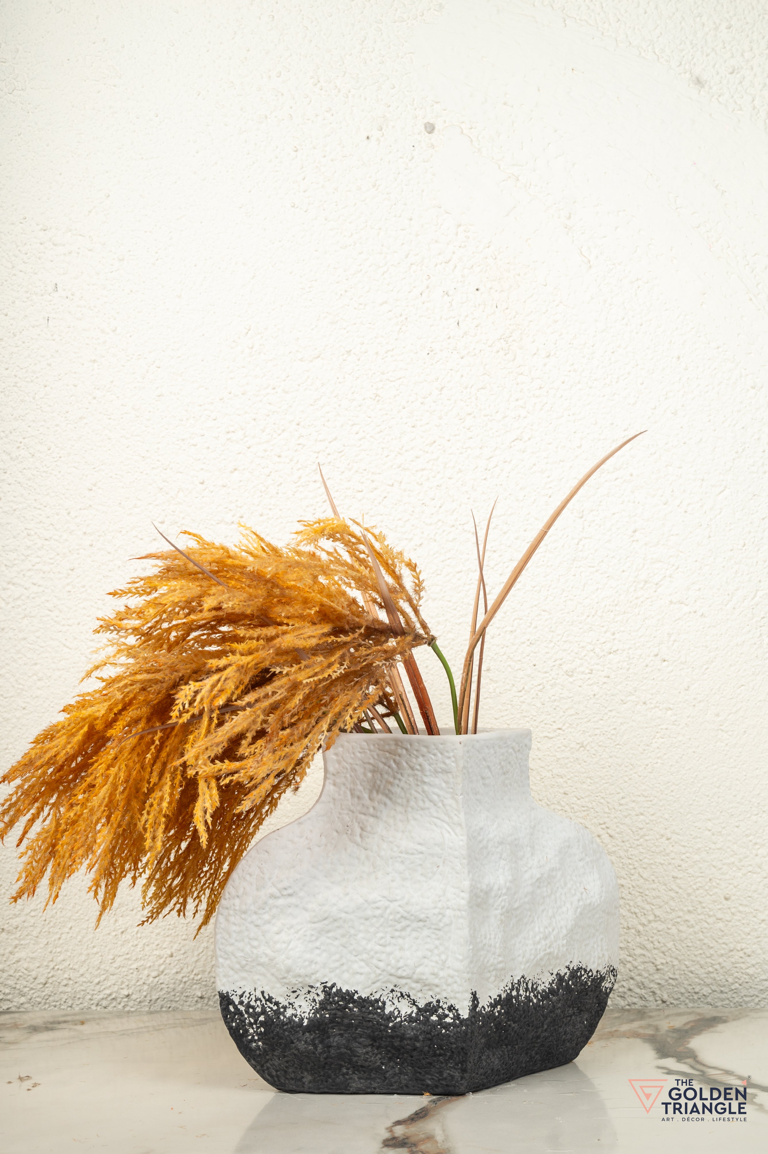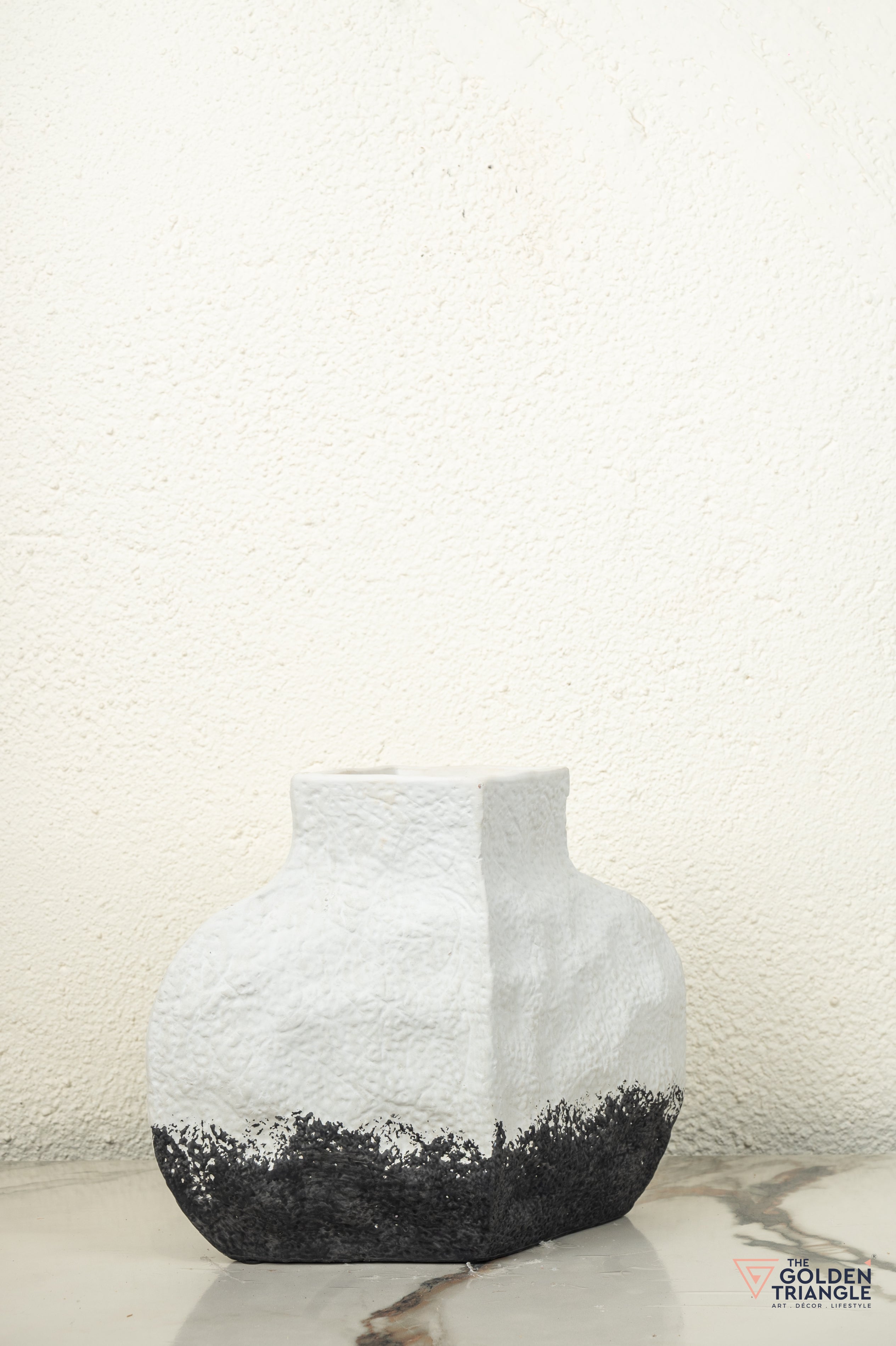 Discover the beauty of this handcrafted ceramic vase, featuring a striking contrast of smooth white and textured black. Its unique design and organic shape create a captivating focal point. Perfect for showcasing fresh flowers or as a standalone decorative piece, this versatile vase is a must-have for home decor enthusiasts seeking a one-of-a-kind statement piece.