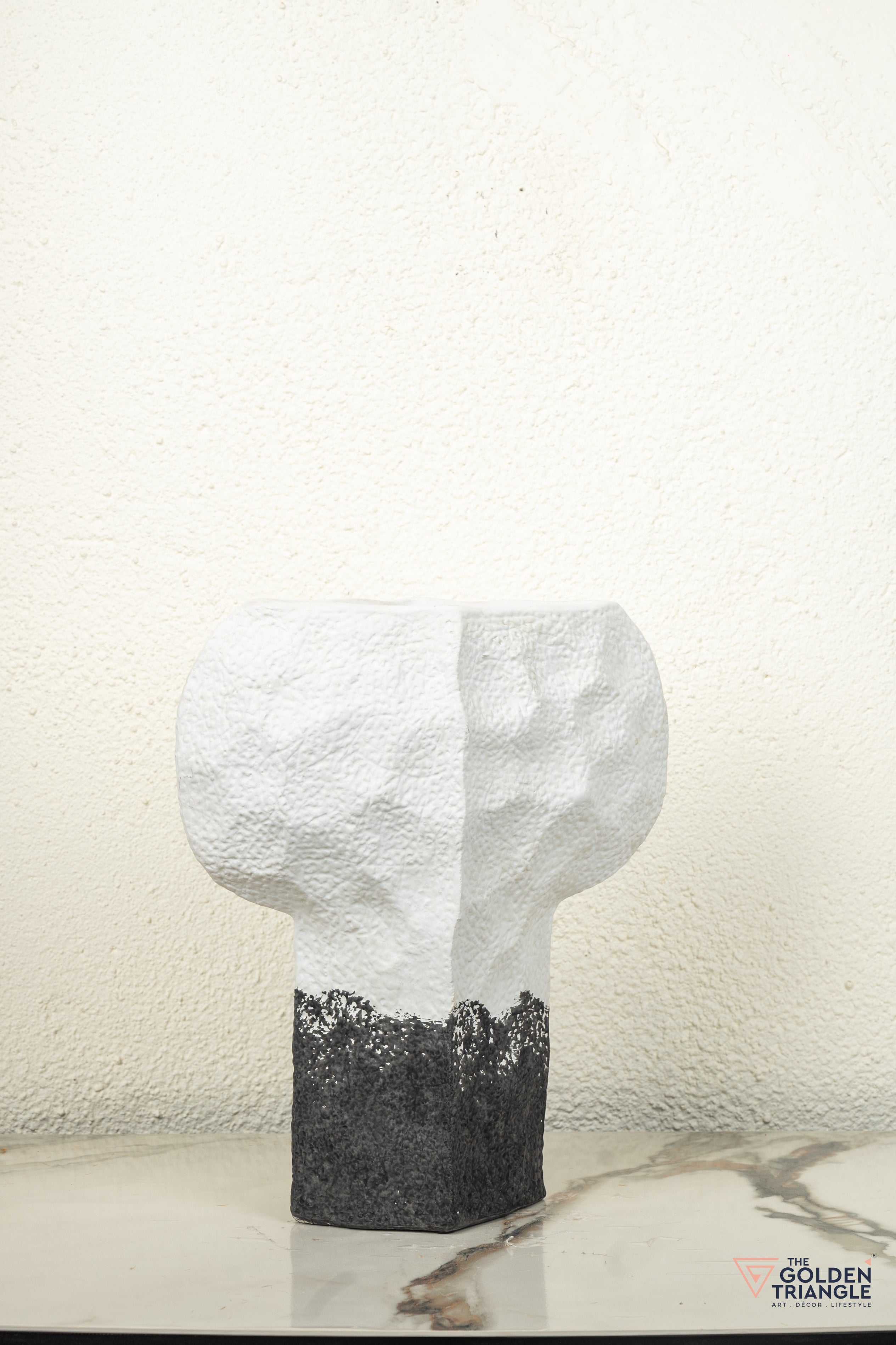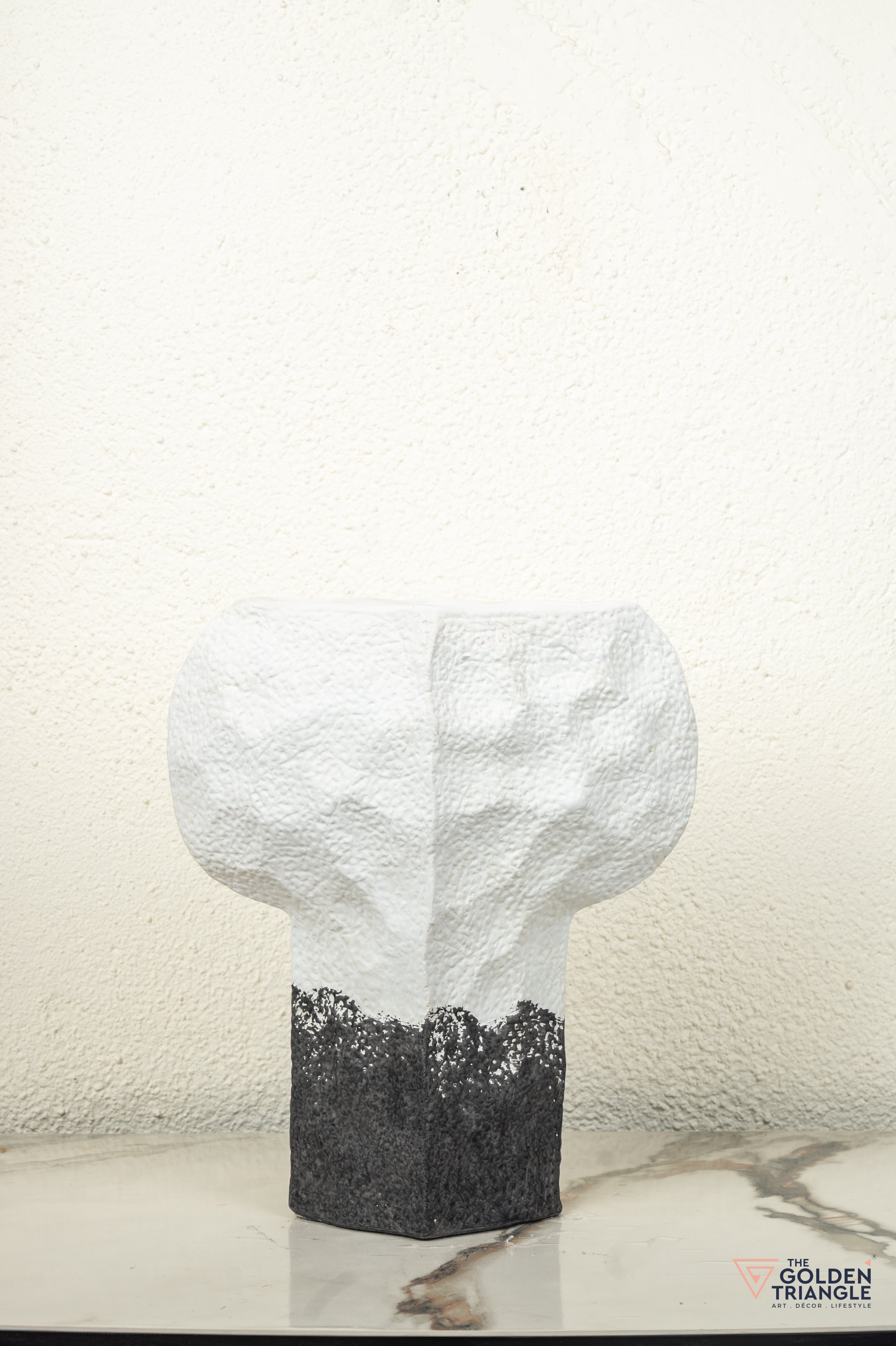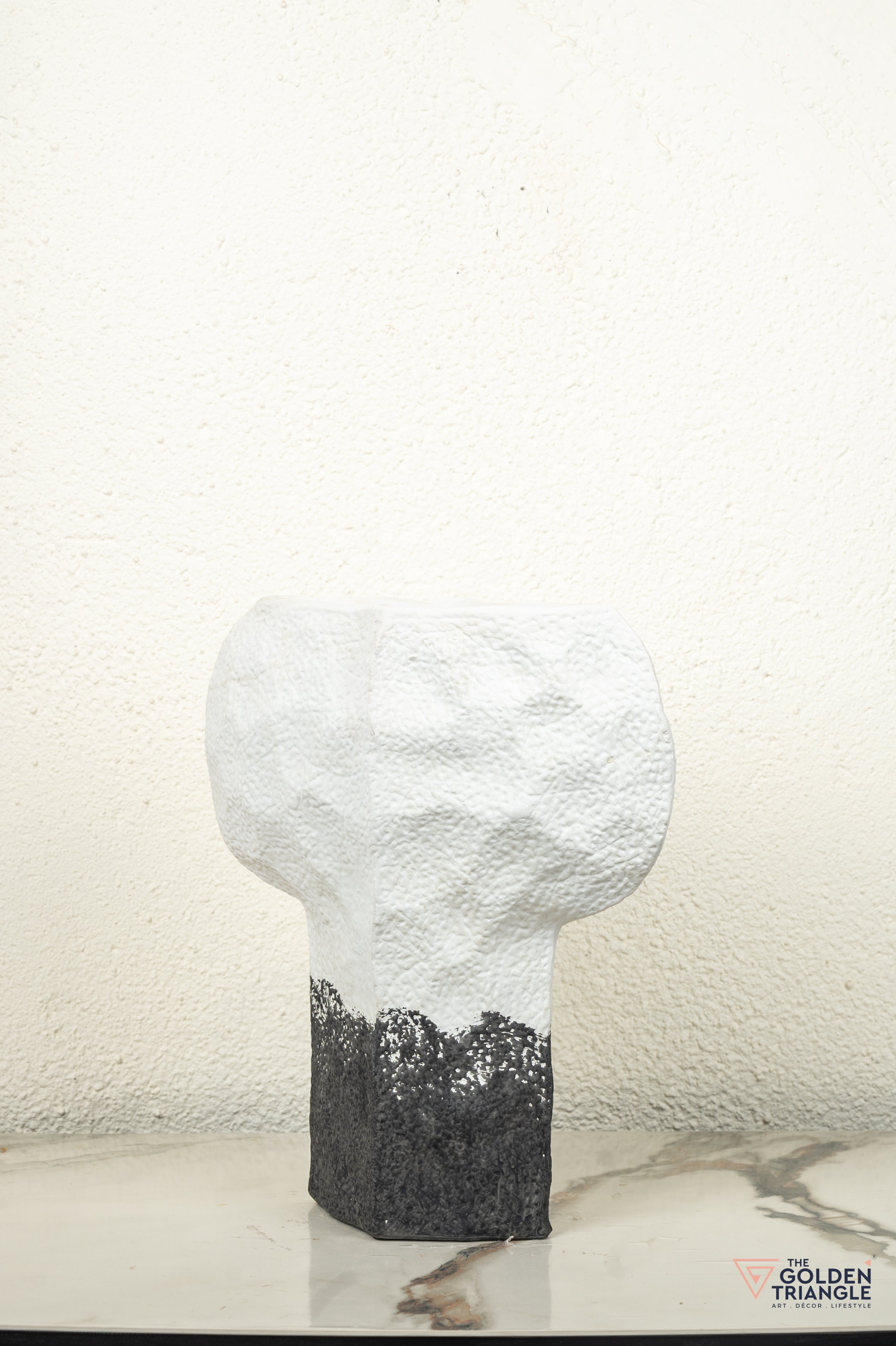 Discover the beauty of this handcrafted ceramic vase, featuring a striking contrast of smooth white and textured black. Its unique design and organic shape create a captivating focal point. Perfect for showcasing fresh flowers or as a standalone decorative piece, this versatile vase is a must-have for home decor enthusiasts seeking a one-of-a-kind statement piece.