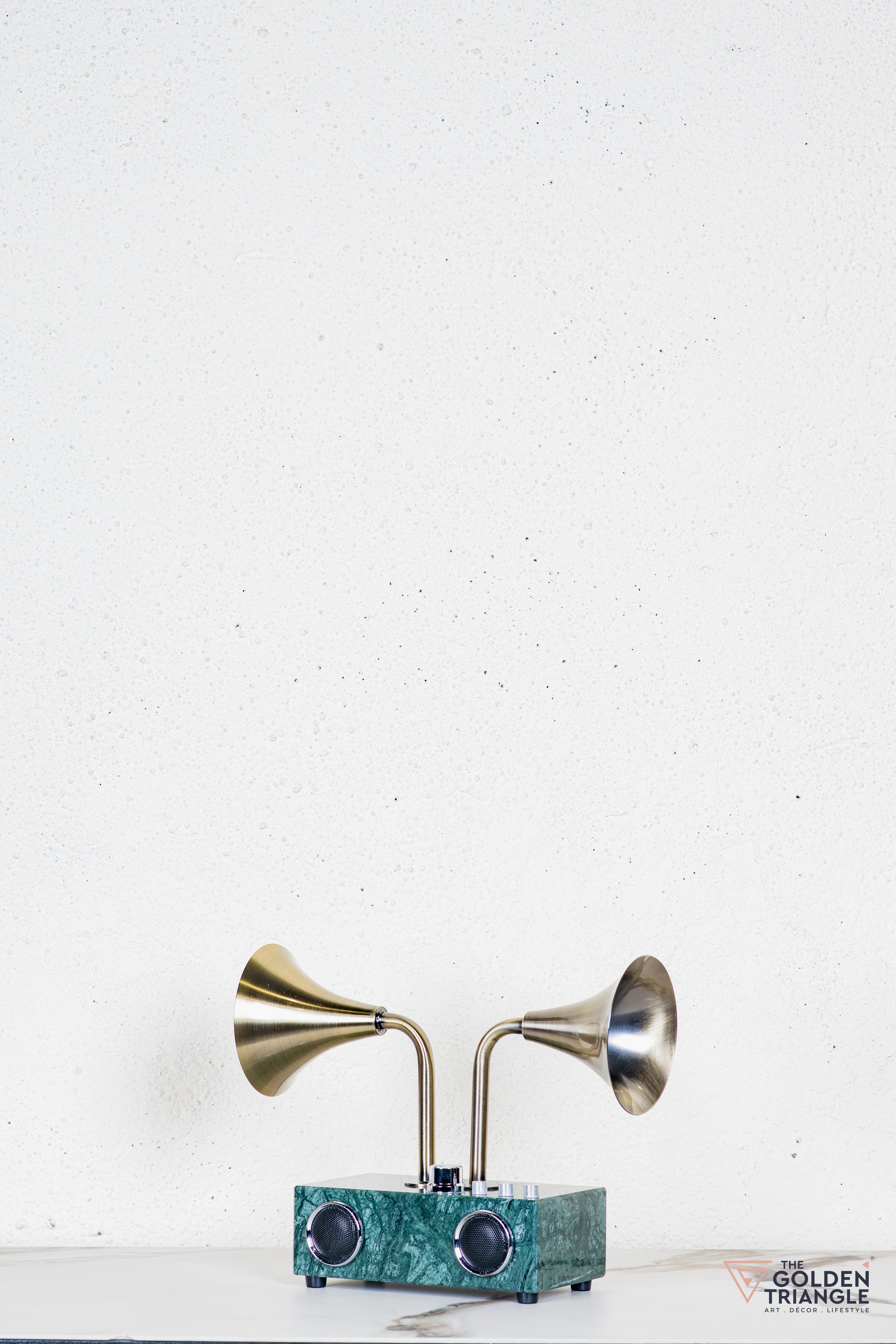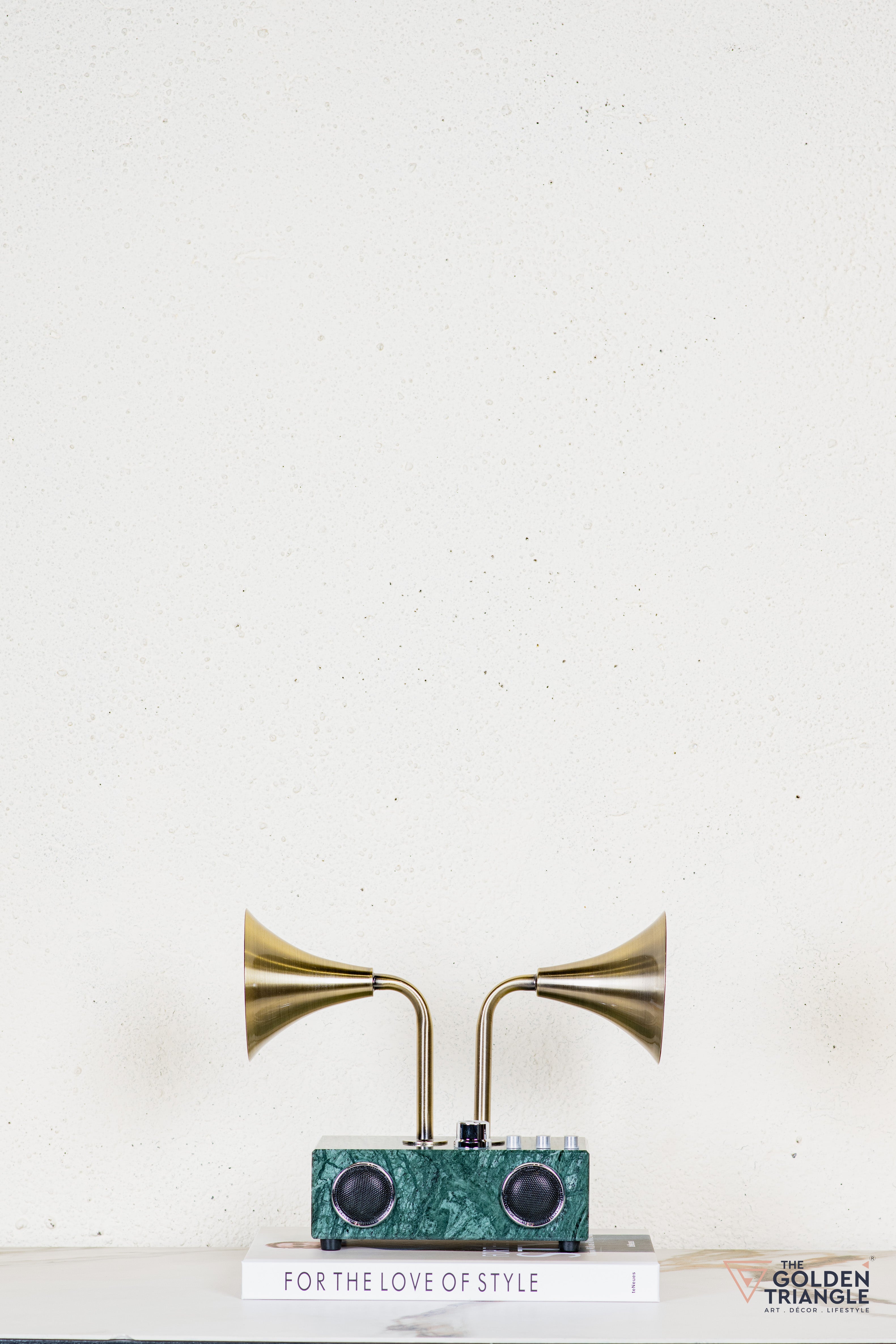 Bring a touch of nostalgia and elegance into your space with this Marble Music player showpiece, a perfect blend of vintage charm and modern sophistication. Designed to evoke the golden age of music, this tabletop décor piece captures the essence of classic phonographs with a contemporary twist.