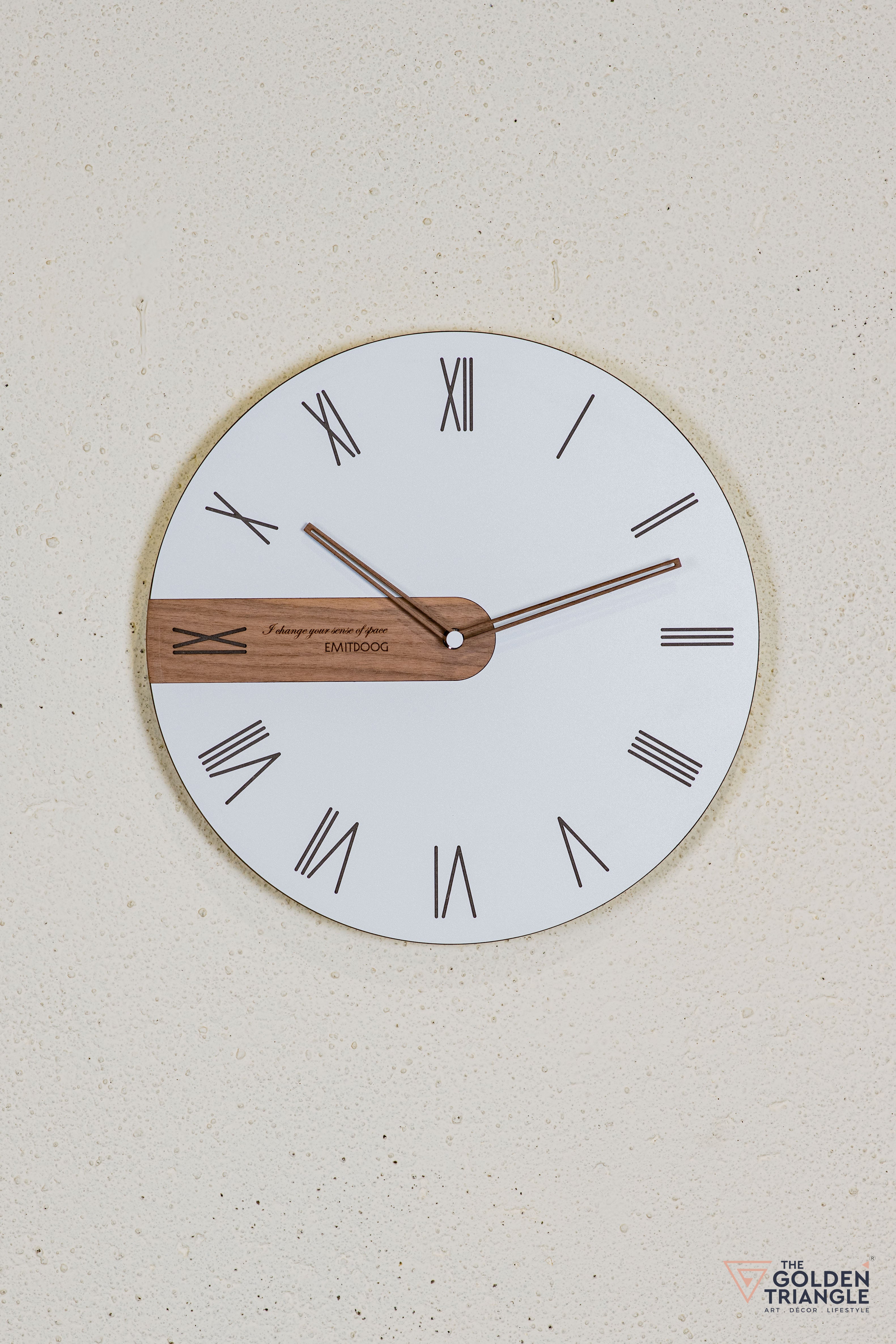 Contemporary & Artistic Design: A statement wall clock with a unique overlapping shape, blending modern aesthetics with functional décor.