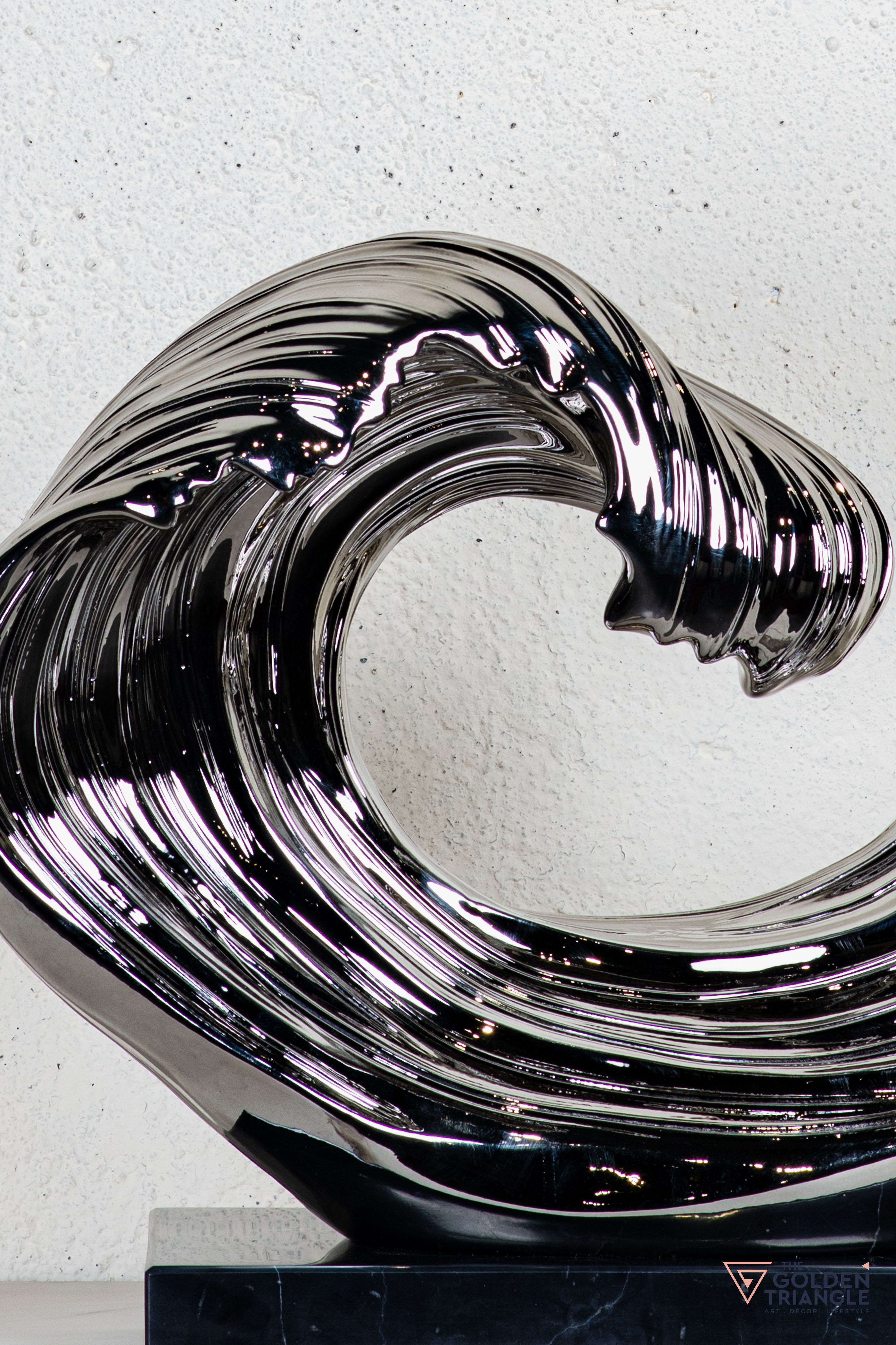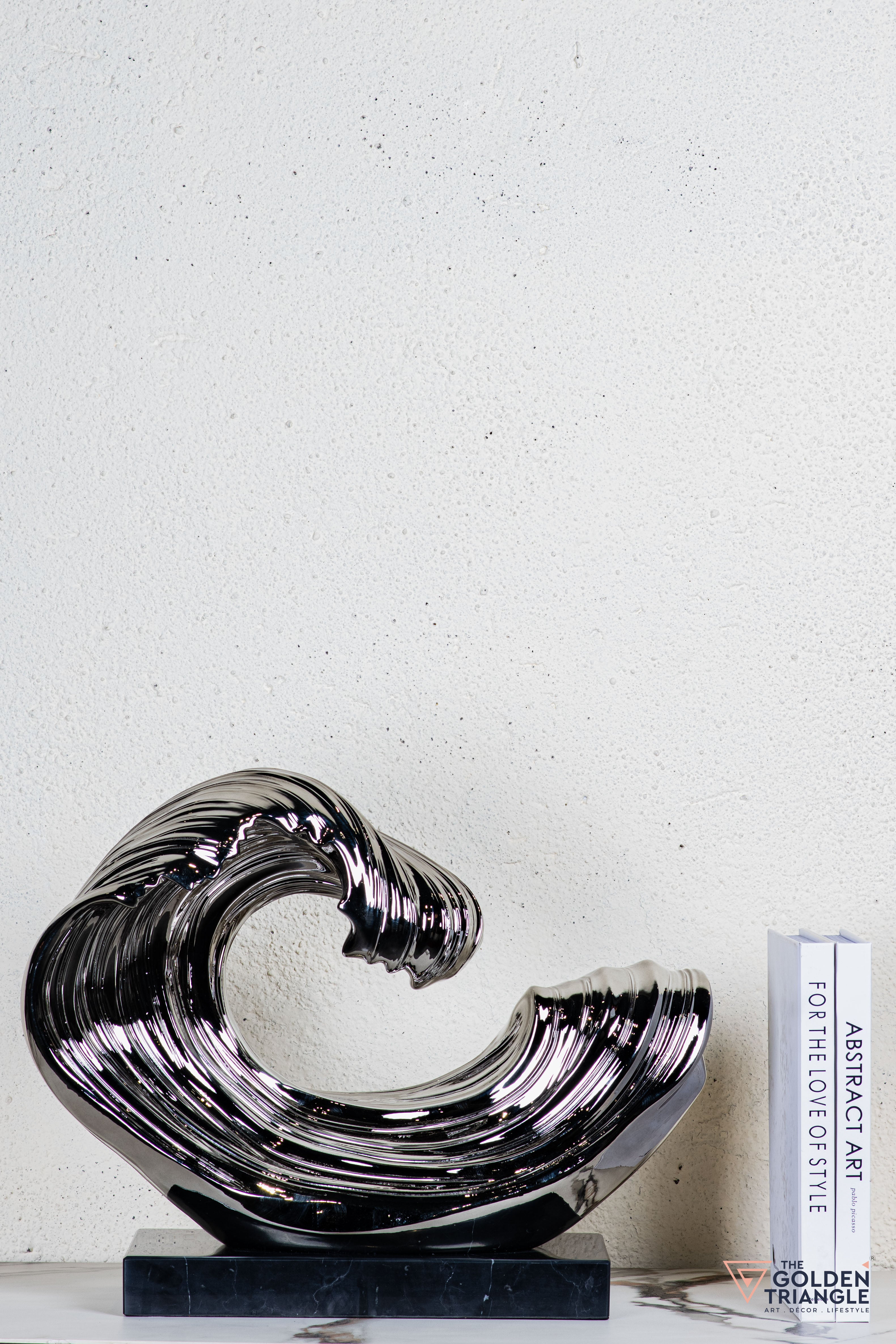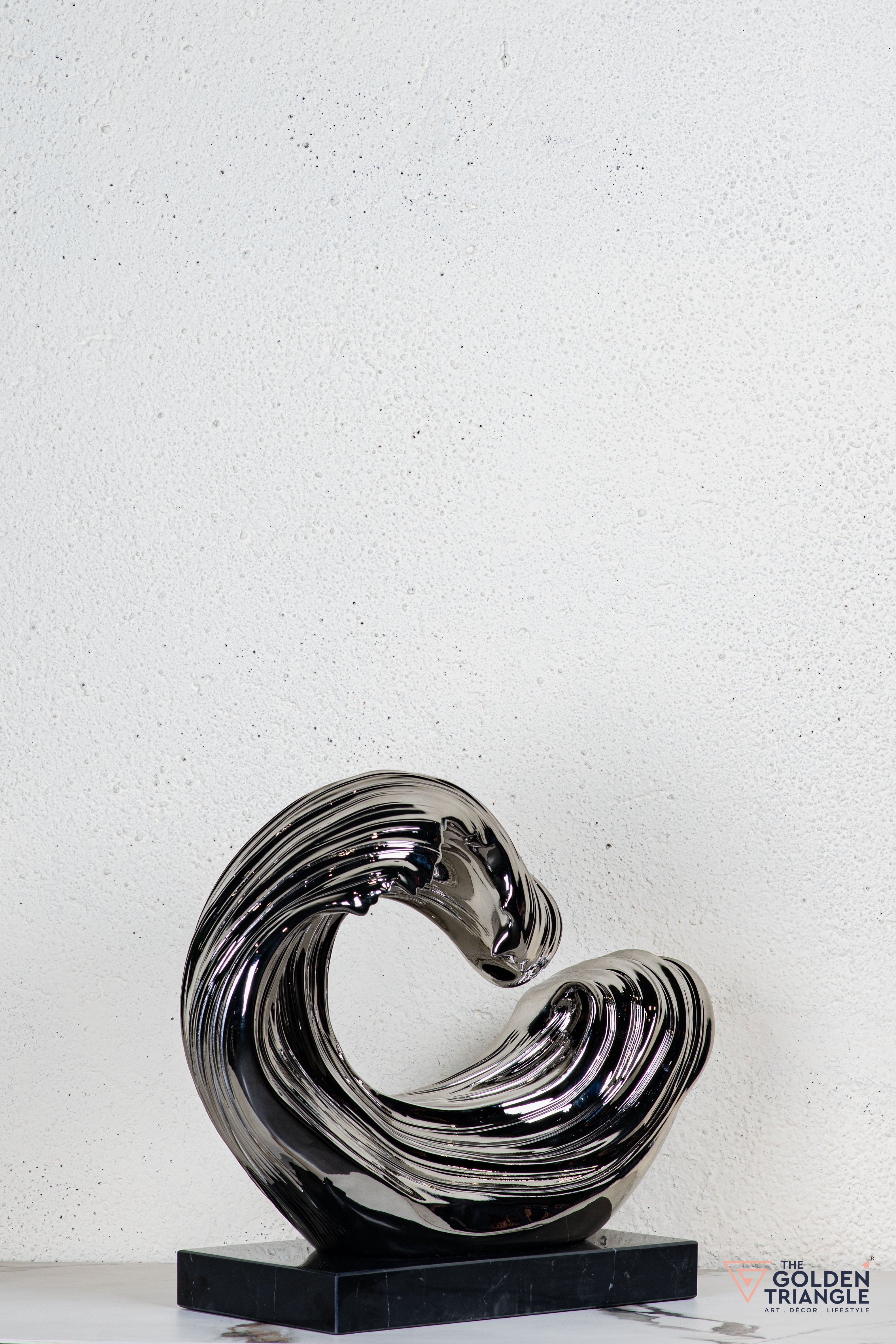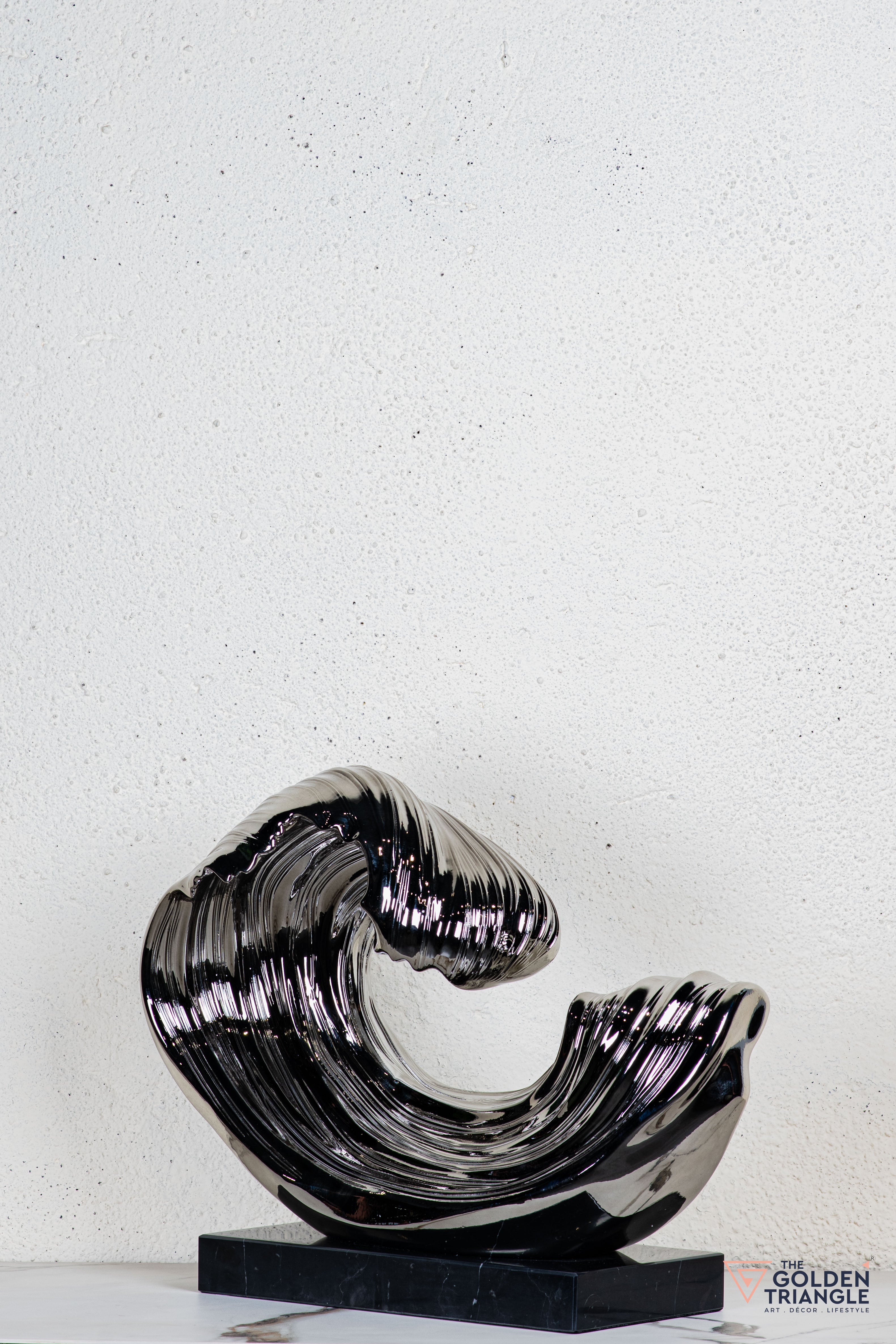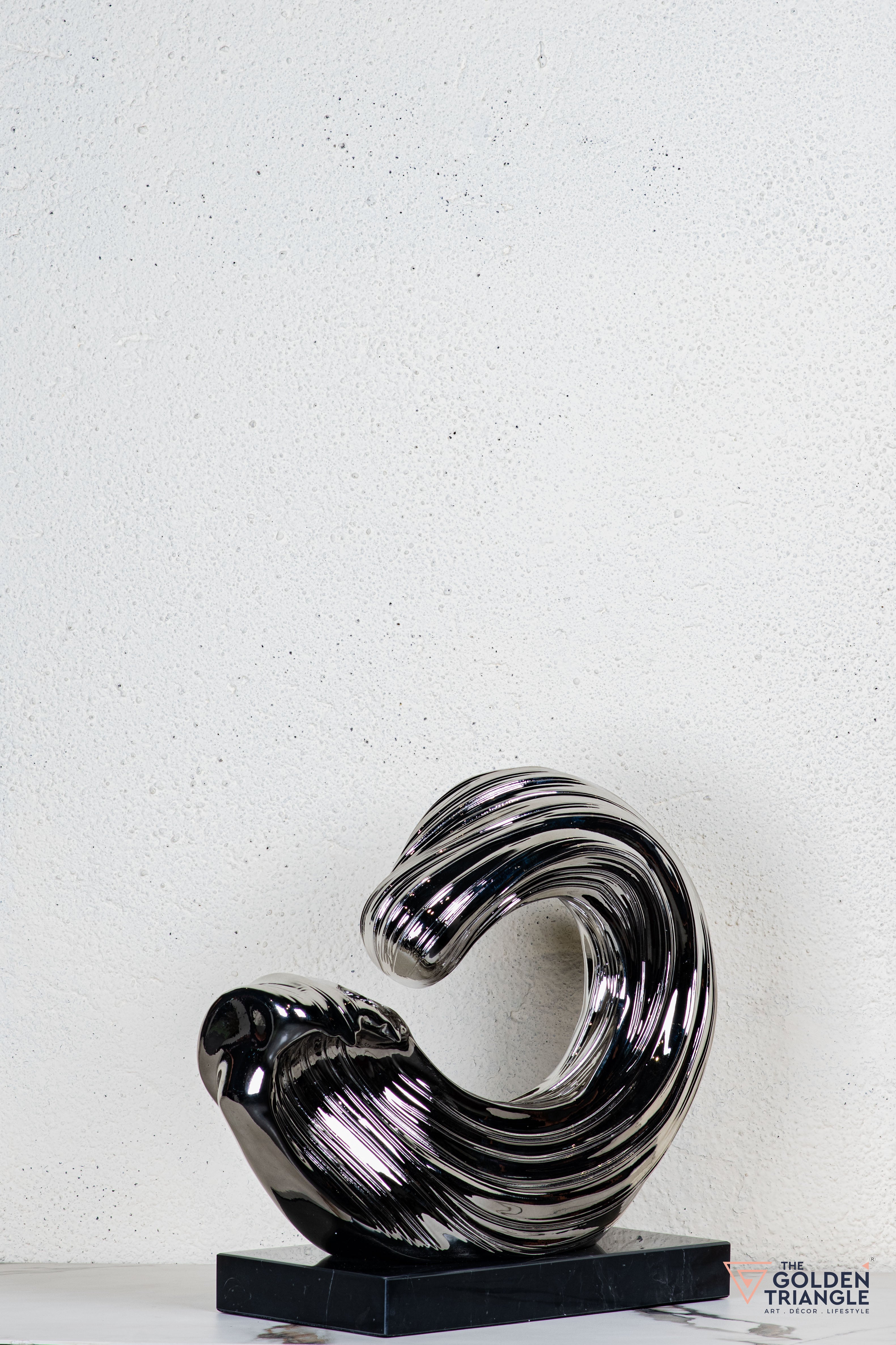 Discover unparalleled sophistication with our abstract sculpture, a masterpiece destined to elevate your home décor. This sculpture boasts an alluring electroplated finish. Its avant garde design adds a touch of modernity and elegance to any living space, captivating the eye. Crafted with precision and attention to detail, this sculpture is the epitome of luxury, seamlessly blending contemporary aesthetics with timeless charm.
